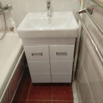 Корпус тумбы выполнен из влагостойкой ДСП, фасад — из ламинированной МДФ, специально предназначенных для использования в условиях высокой влажности.