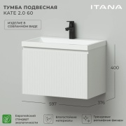 Шкафчик подвесной с раковиной Itana Kate 2.0 60 см, бланж