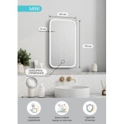 Зеркало «Mini» с сенсором на касание и обтекаемыми углами. Ширина светящейся полосы — 20 мм. Это зеркало легко впишется даже в самые небольшие ванные комнаты. Корпус зеркала выполнен из белого пластика, что придает ему современный и элегантный вид. Фронтальная подсветка с холодной цветовой температурой (5000K) обеспечивает превосходное освещение, делая отраженные объекты четкими и яркими. Активировать подсветку можно с помощью сенсора, оснащенного диммером, который позволяет регулируя яркость в зависимости от длительности касания. Это маленькое и универсальное зеркало с подсветкой является как стильным, так и функциональным дополнением для ванных комнат любого размера. Оно акцентирует красоту обстановки и создает атмосферу уюта, а качественное освещение делает повседневные процедуры более легкими и приятными.